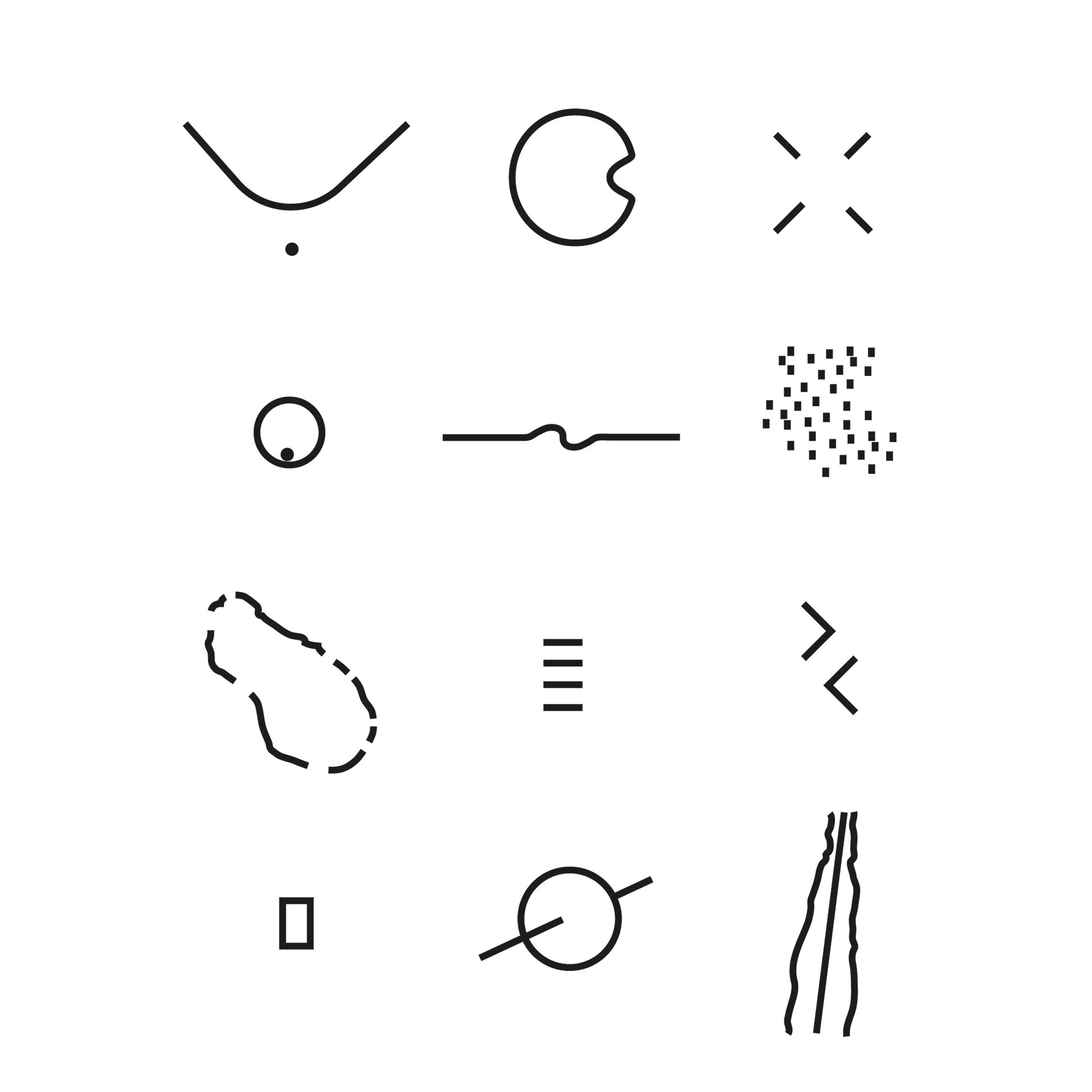 She found a set of characters (signs) one week ago. She redrew them one by one, side by side. Their meaning was beyond reach, obviously. By using the characters, she attempted to write a message to a dream being, to a fellow person in the future. The characters acquired their meaning in configuration - what mattered was their choice, the scale, the distance, proportions, density, hierarchy, regularity, symmetry, connection.