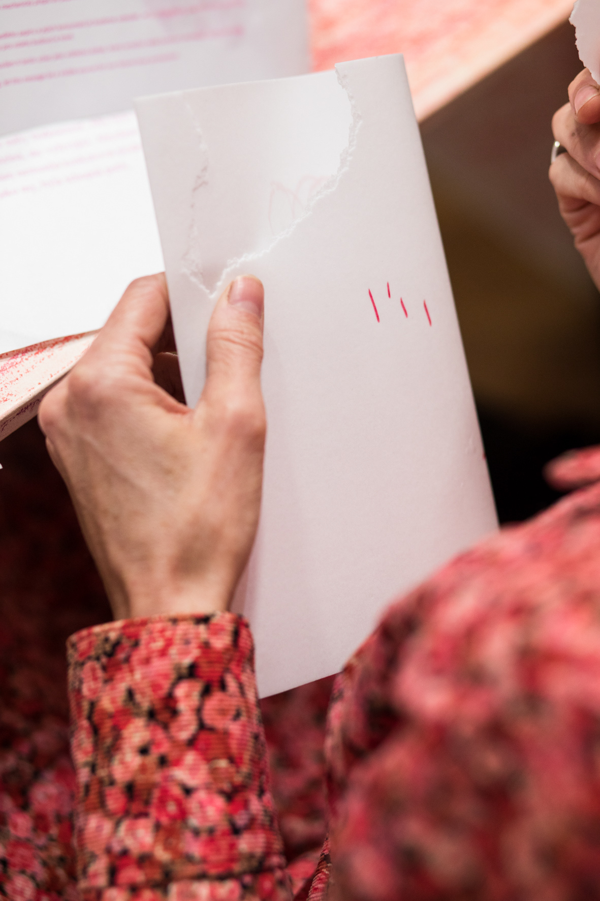 The set of the given characters serves as an out–of–language code. The authors are composing the messages out of these characters and writing them by their finger directly on the back of one person. The visual traces perceived by touch are transmitted through the body to the surface of the edible paper. Now the messages are soaked in edible paper and by consuming them we will be sending them.