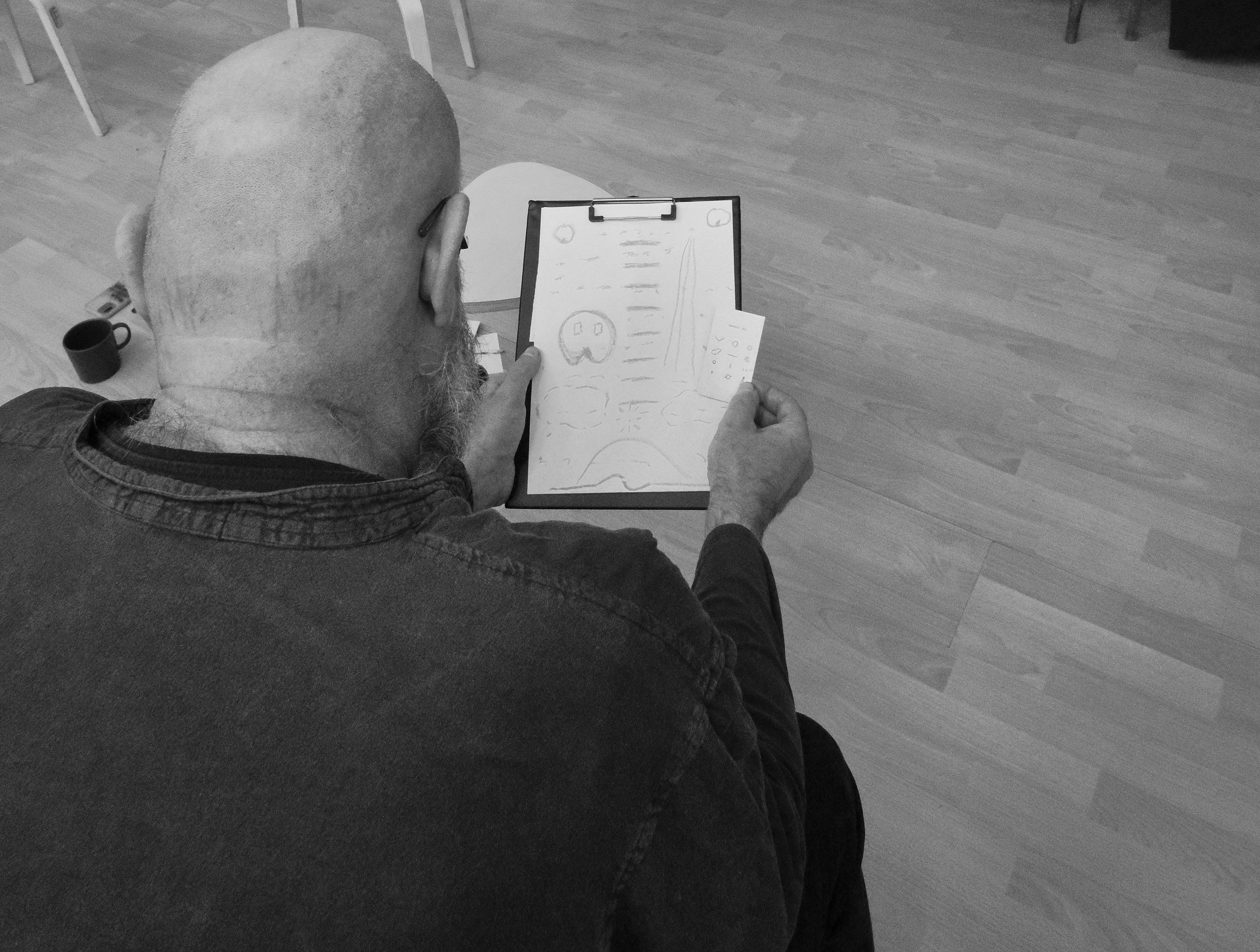 Group exploration of the creation and transmission of meanings through drawing and action is a common playing field. The intention of the workshop is to explore the individual components of transfer - the visuality and meaning-making of signs, the role of haptic memory/response, the development, sharing and testing of transfer strategies, exploring the possibilities of connection. It uses drawing, space, touch, game format and common sharing.