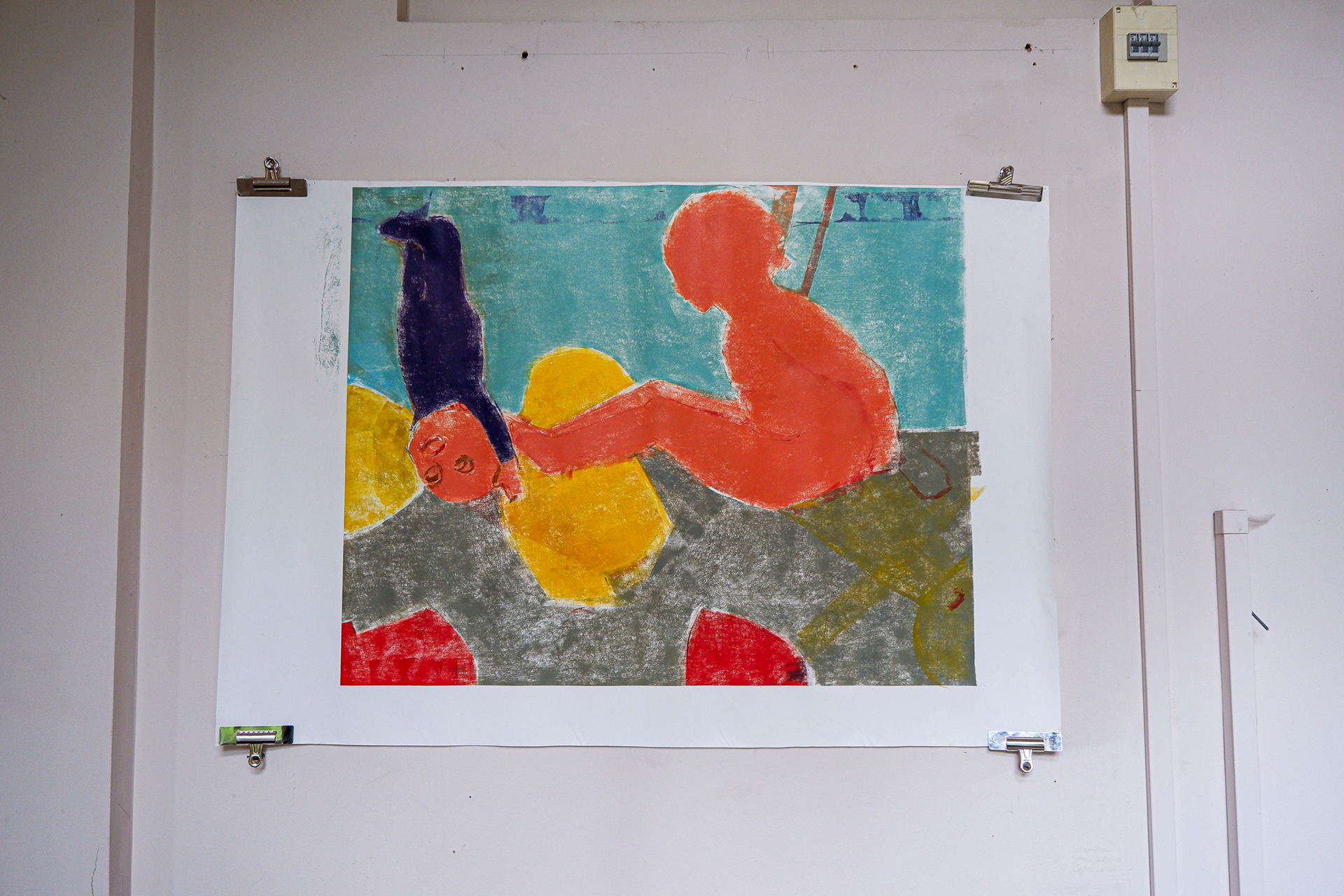 I bring my children to jamming. They draw freely on the big canvas. Anything goes—except that sometimes someone paints over their little pig. It’s heartbreaking.