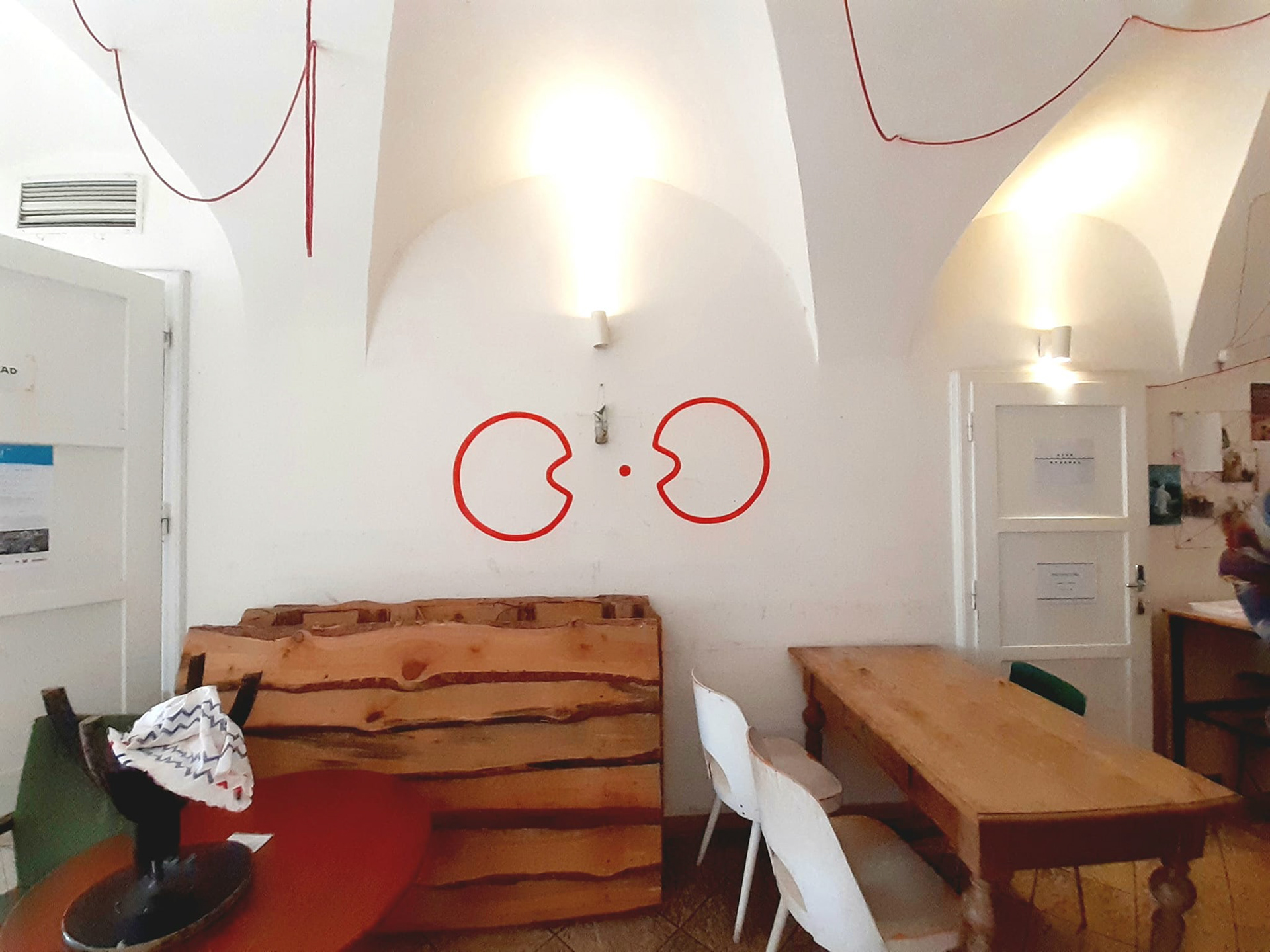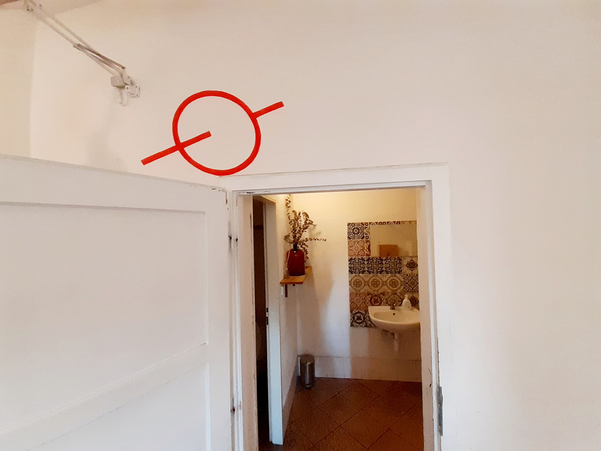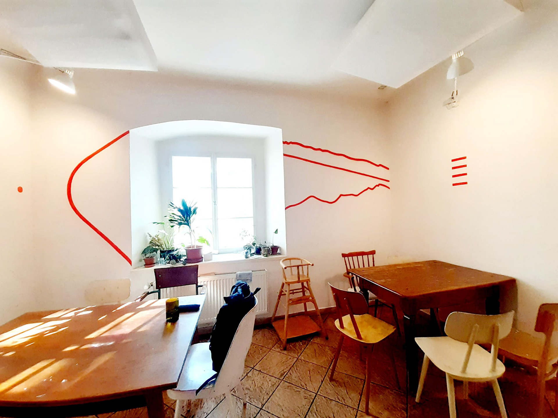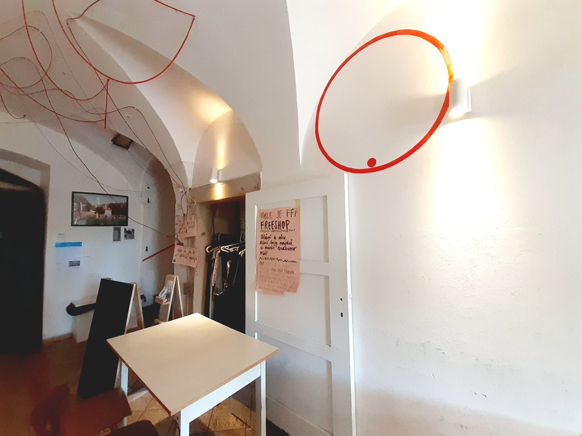 Site-specific intervention works on two levels and each of them activates viewers in a different way. Signs on the walls encourage new views, associations, more or less conscious linking of visual perceptions. By looking at them, you can compare them or read their visuality as a specific form of language. However, it is also possible to take the assignment in hand and proceed to fulfill it - with the help of the present signs, formulate your own message, pass it on through the other person, concentrate on the touch as the moment of sending. The ordinary assignment is to actively participate in the world, learn to perceive where and how our desires flow, and find new, functional connections with others.