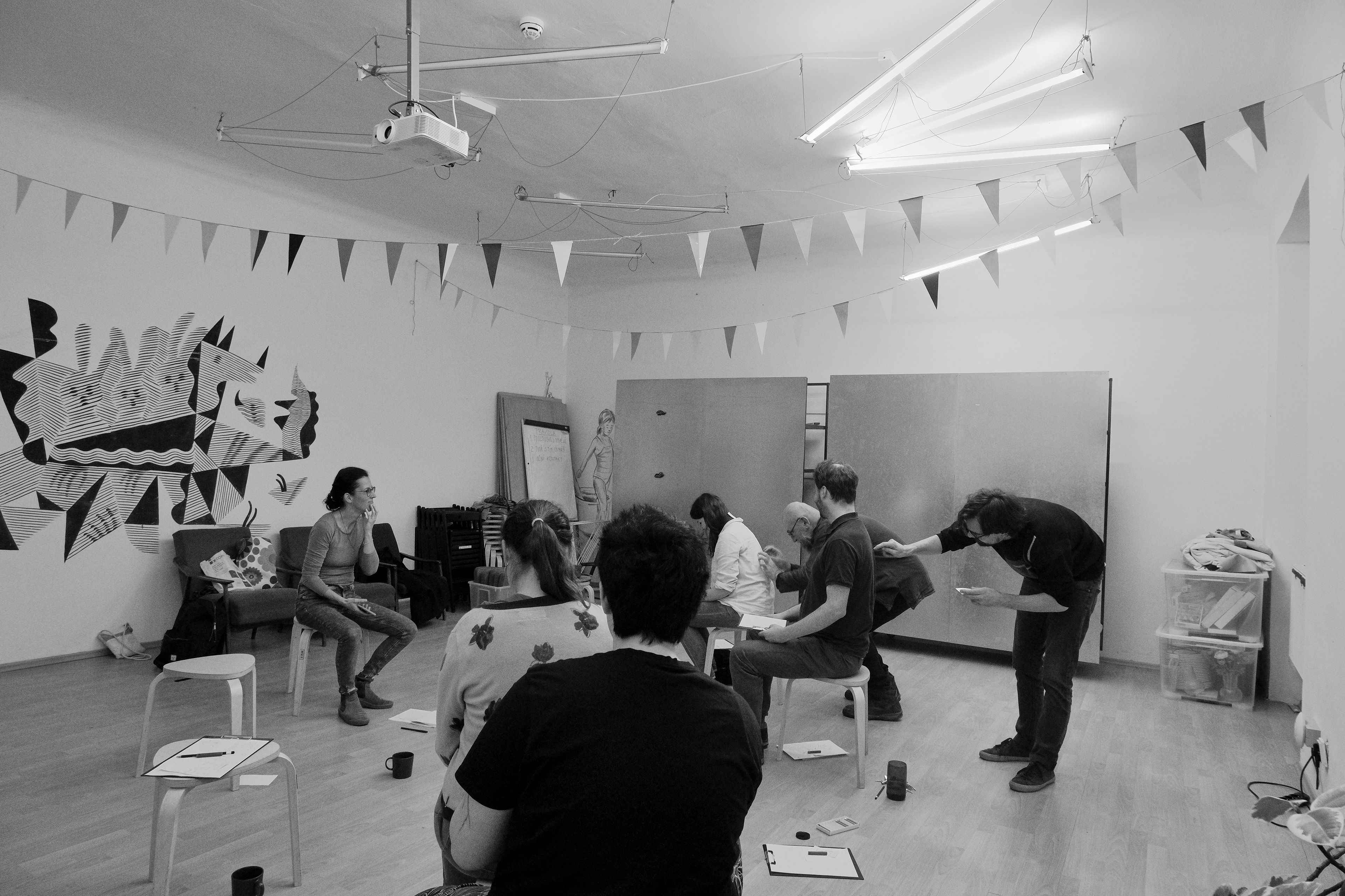 mural painting-intervention and workshop in Scout Institute at Kampa, Prague, 2023