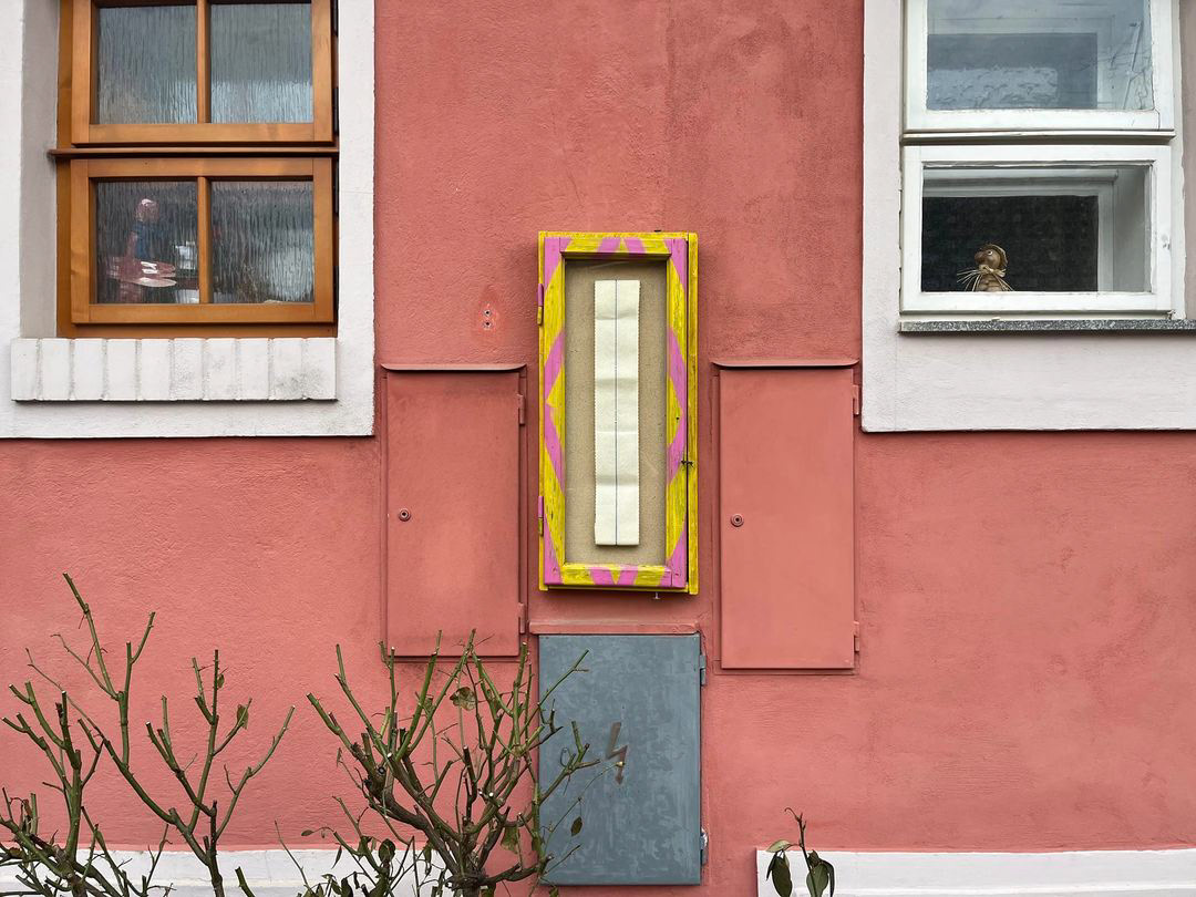 Exhibition Permanent Farewell 18.2.-10.3.2024 in the OKNO gallery, on the facade of the building at Přímá Street 75, Prague 5.