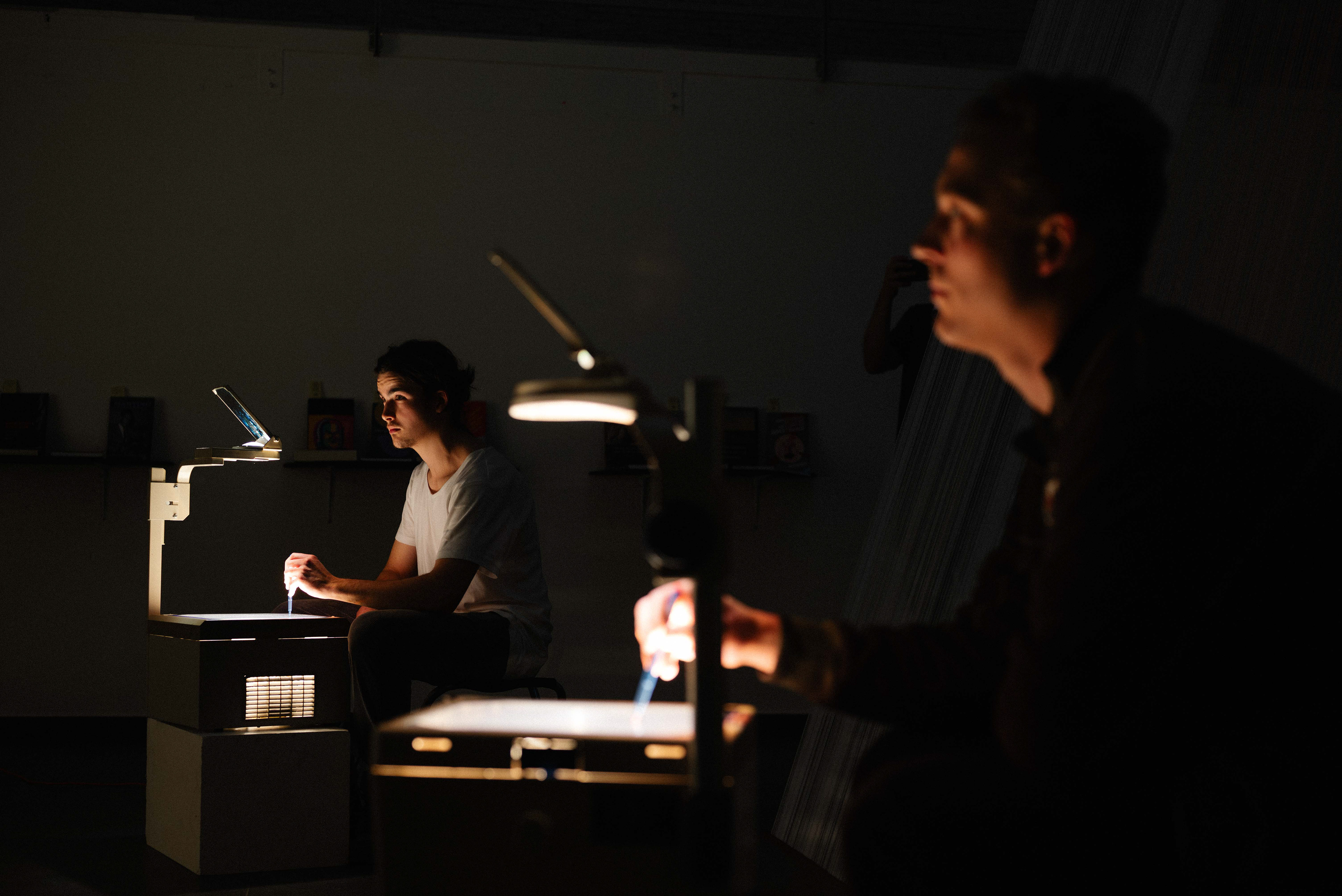 When do you draw alone, alongside, or with another? When do you draw against them? How do you place questions through drawing? How does the line move through the shared space you occupy? When two people draw together, what do they reveal to each other?