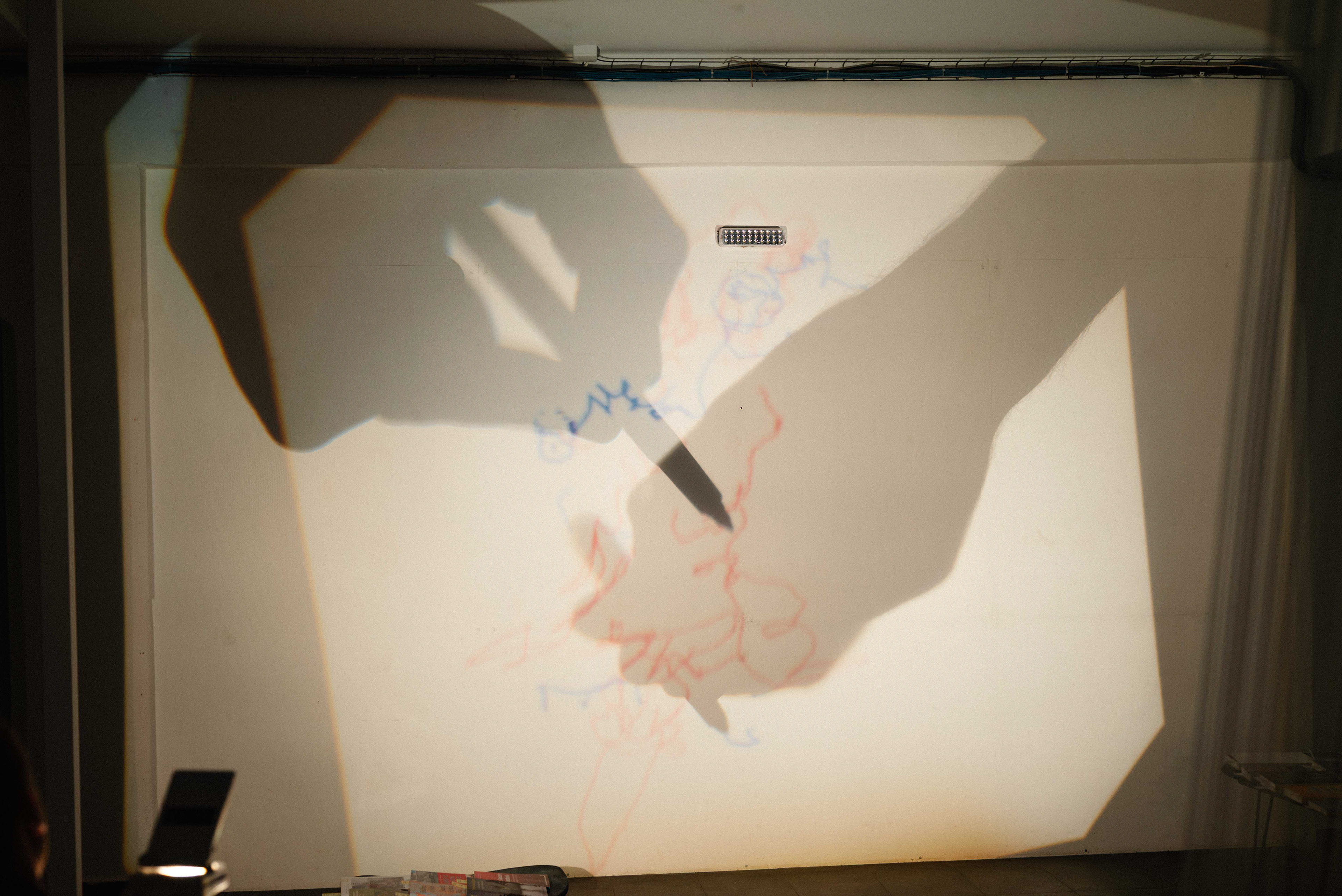 This experiment also serves as a research framework, connecting tacit (embodied) knowledge, bodily gestures, and intuitive reactions. The resulting drawing is more a trace of the process than a finished artwork—a document of mutual “listening” through hand movement, light, and space.