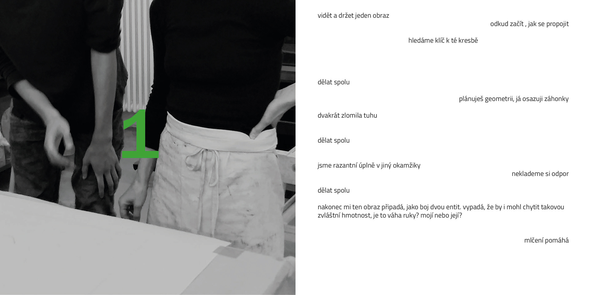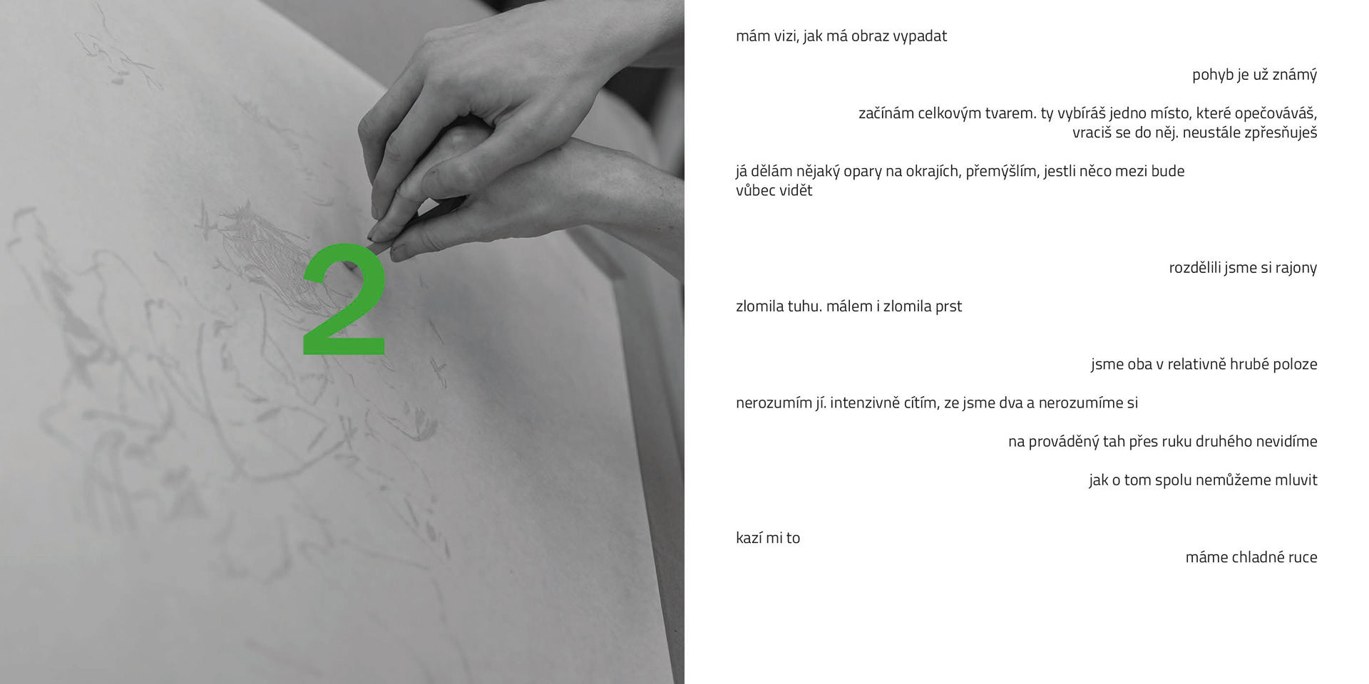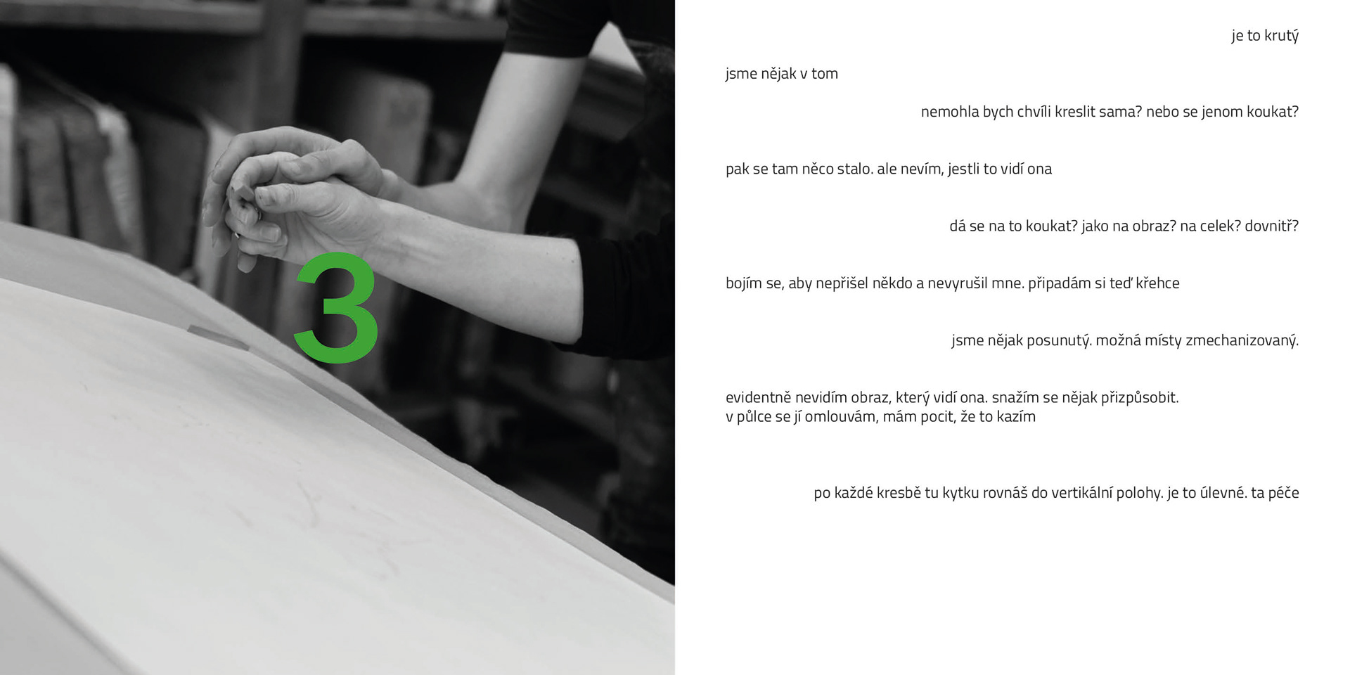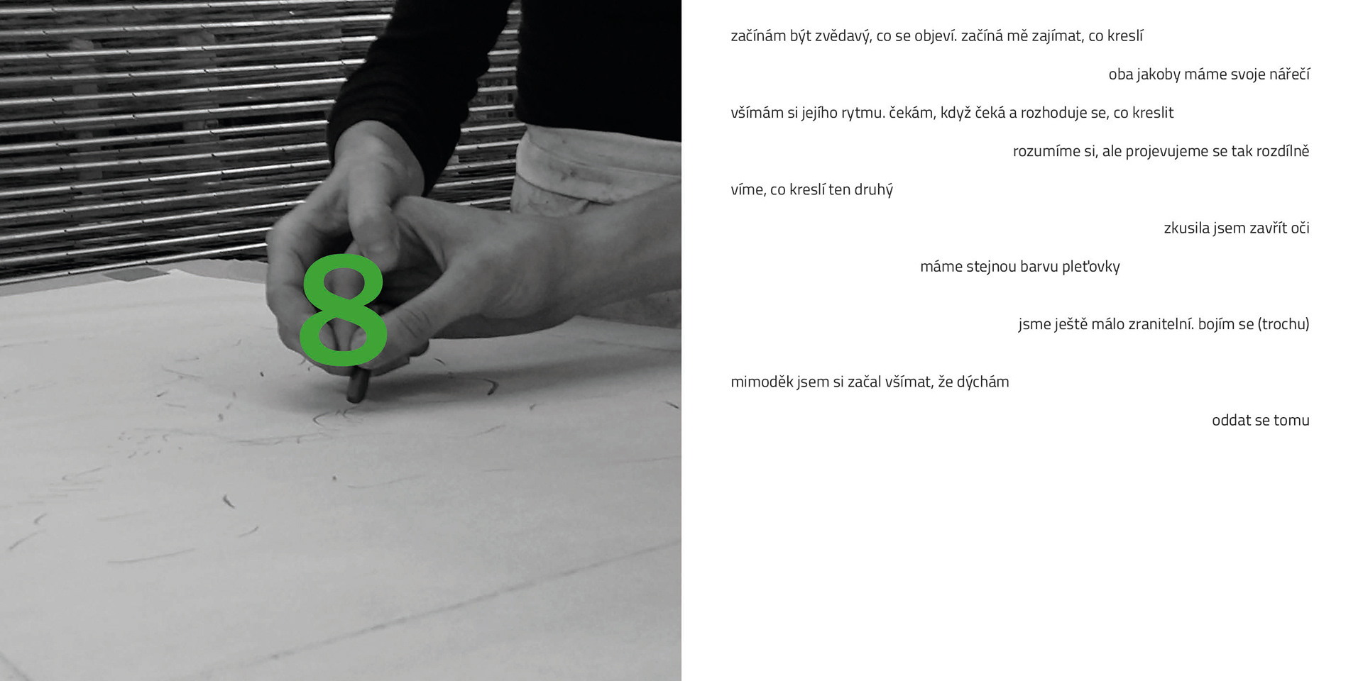 An experiment of sharing the drawing process by two individuals. Focusing on the experience of being together which is happening with full attention of the other one.