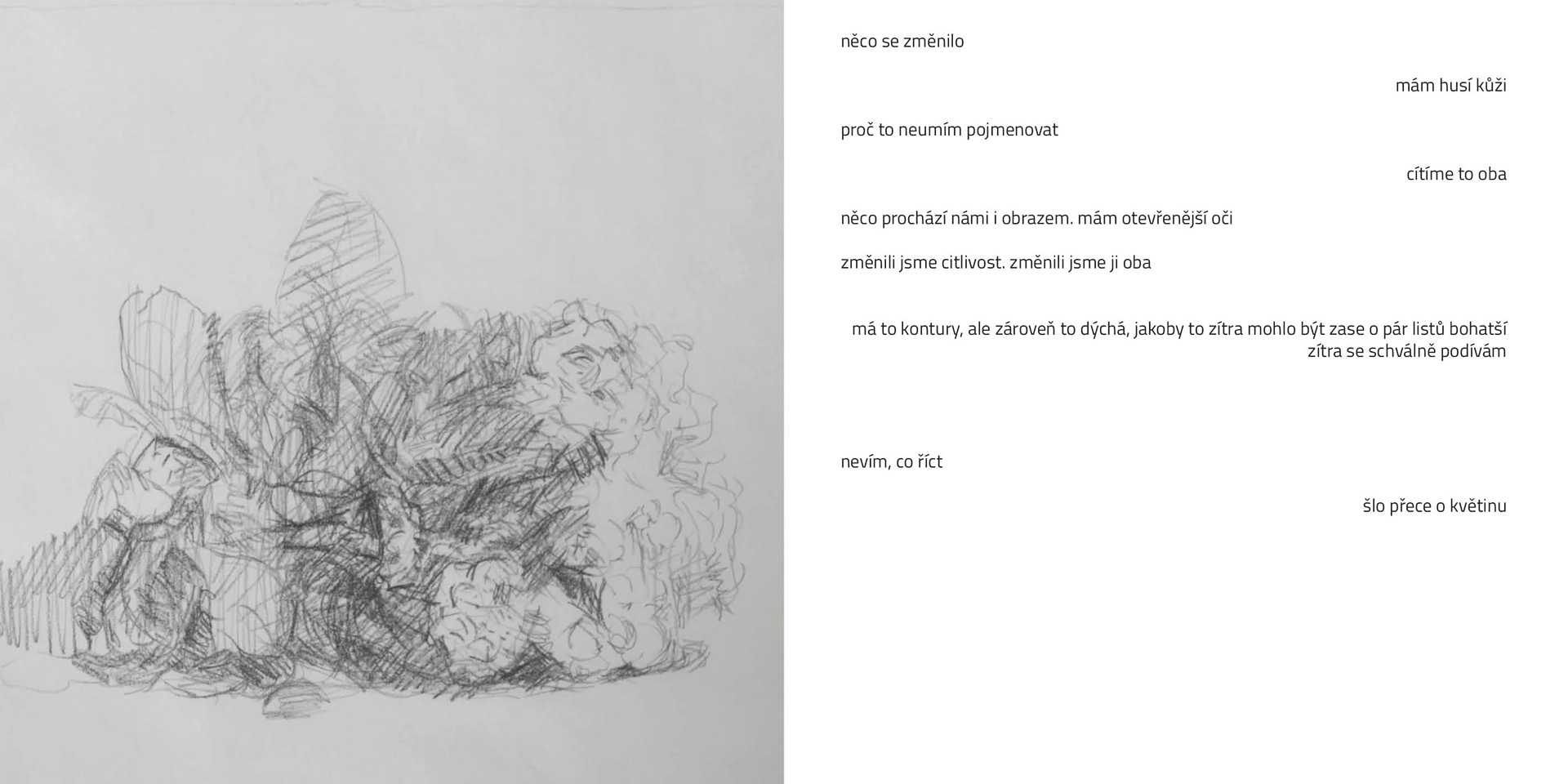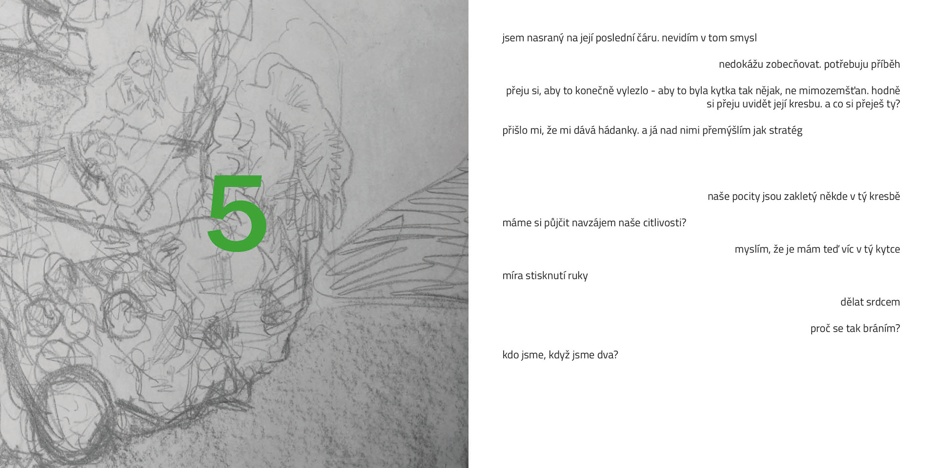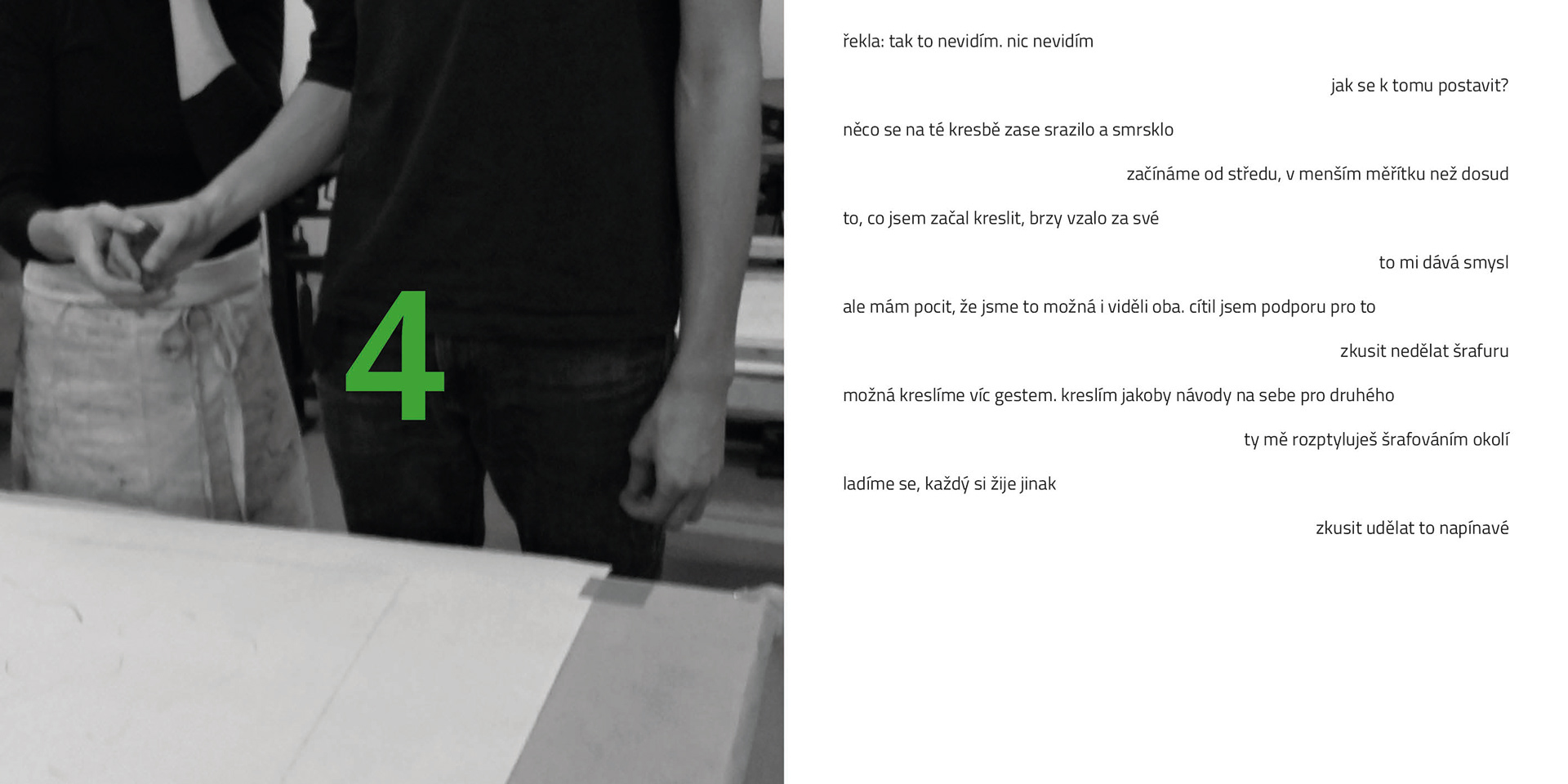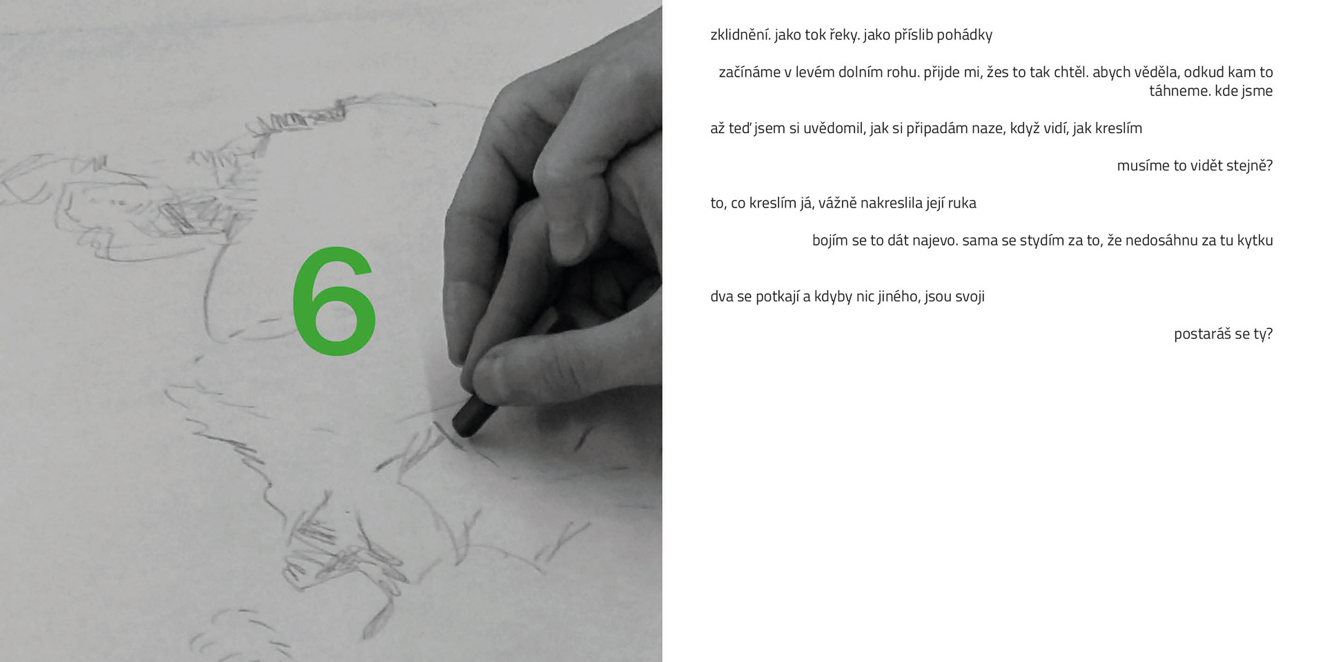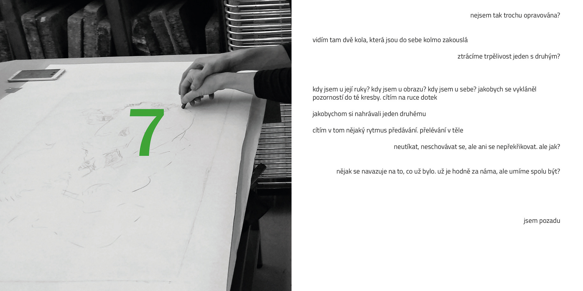 An experiment of sharing the drawing process by two individuals. Focusing on the experience of being together which is happening with full attention of the other one.