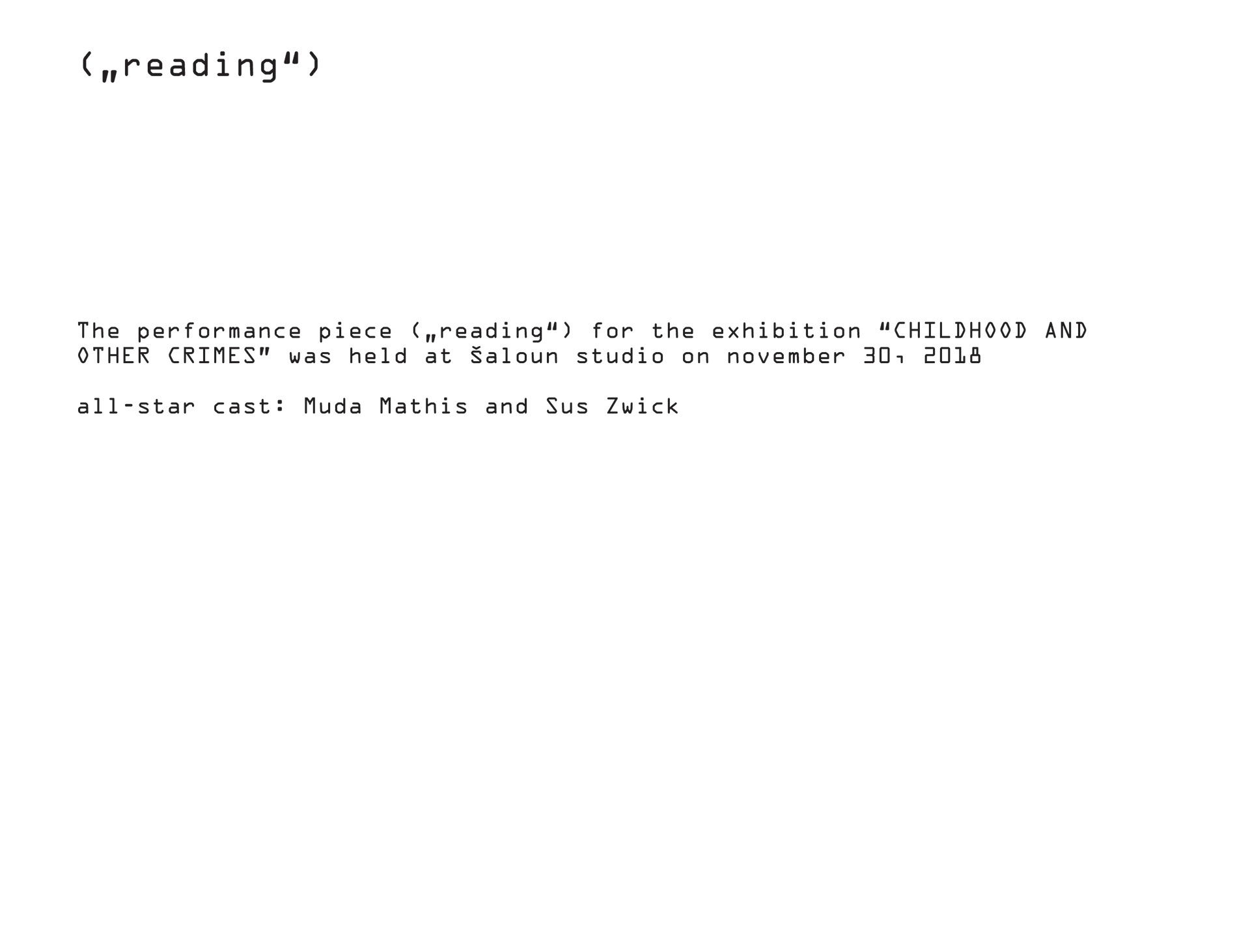 Performed during exhibition Childhood and other crimes, Šaloun villa, Prague, 2018.